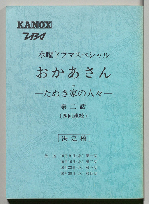 主な出演 : 鈴木京香,倉田てつを,田中好子,平田満,佐藤友美,川田美香,布施博,佐々木すみ江,中原ひとみ,羽田美智子,古舘伊知郎,大沢樹生,河合美智子,とよた真帆,伊藤嘉奈子,でんでん,小池榮,樹木希林,蟹江敬三,鈴木清順,橋爪功,加藤治子,い- 作家 : 森脇京子