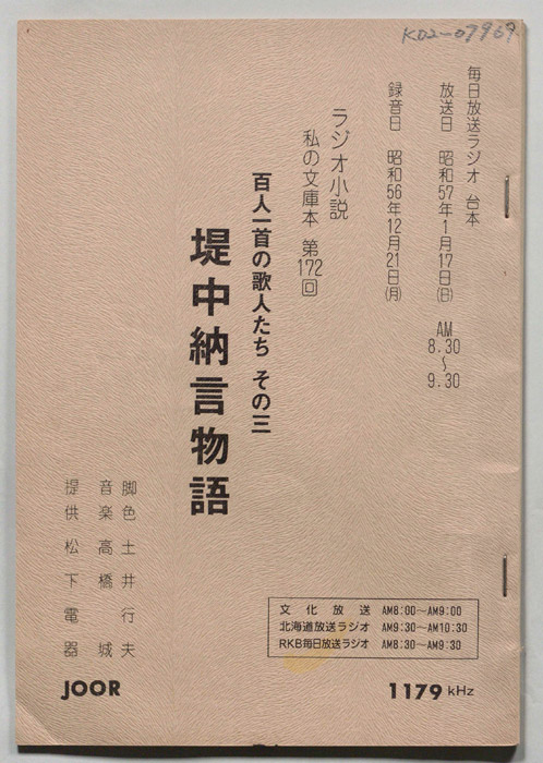 主な出演 : 溝田繁,河野元子,宮田圭子,吉田純子,蔵多哲雄,小林泉,楠本光子,中嶋洋子,千葉保,田中恵里,渡辺千恵子,(ナレーター)林曠子