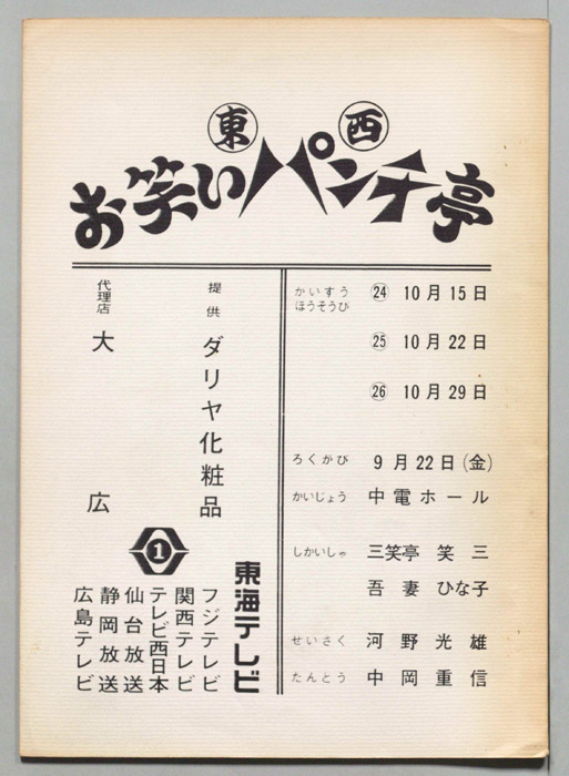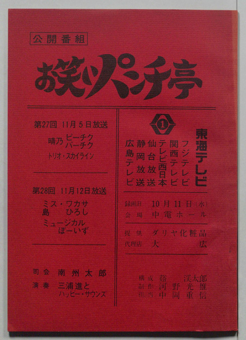 主な出演 : Wけんじ,東京コミックショー,晴乃チック,晴乃タック,ナンセンス・トリオ,(司会)南洲太郎