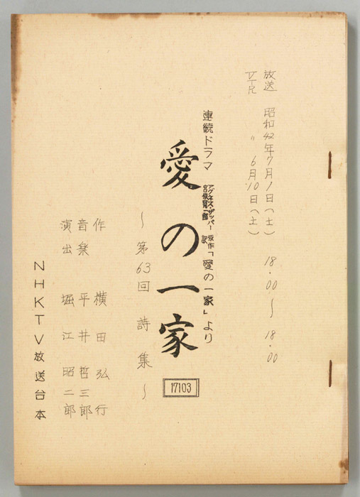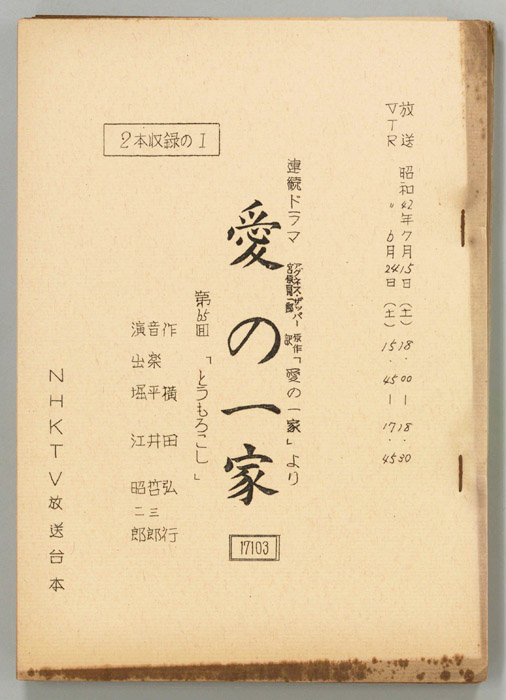 主な出演 : 千秋実,小山明子,鈴木正勝,池田秀一,珠めぐみ,石井浩,佐藤泉,大山尚雄,小峰千代子,桑山正一,浅野順子,吉田勝美,津野哲郎,滝那保代,(語り手)河井坊茶- 作家 : 佐々木武観