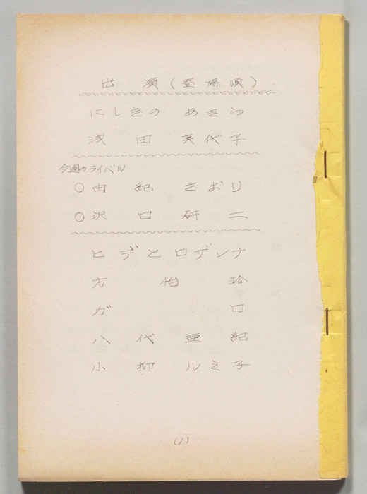 主な出演 : おさる,コージー冨田,原口まさあき,石塚英彦,(ナレーション)清水ミチコ,(ゲスト)明石家さんま,(MC)久本雅美,浅田美代子,松本明子,- 作家 : 大森寿美男