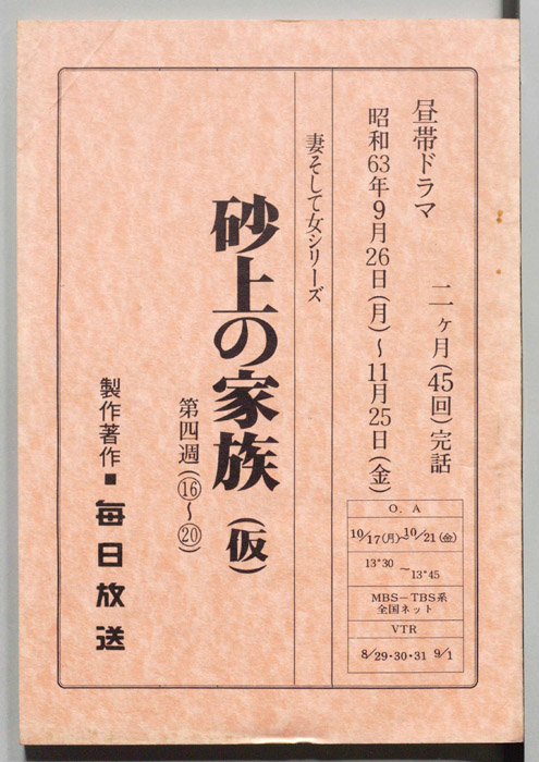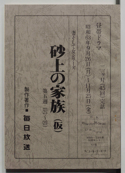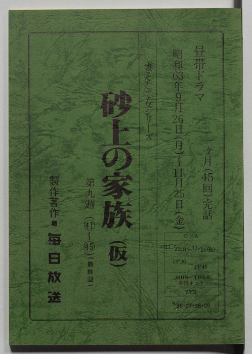 主な出演 : 宮下直紀,山名友貴,浅茅陽子,坂上香織,川村隆紀,荒田佳典,中田喜子,竜雷太,(以下手書き)橋爪功,内藤武敏