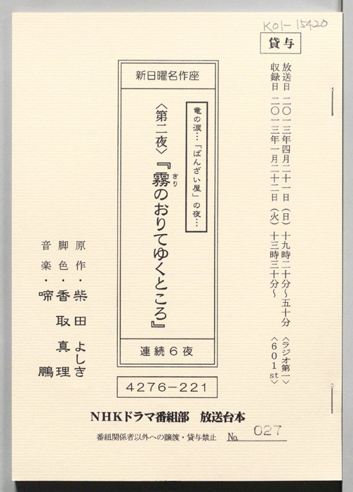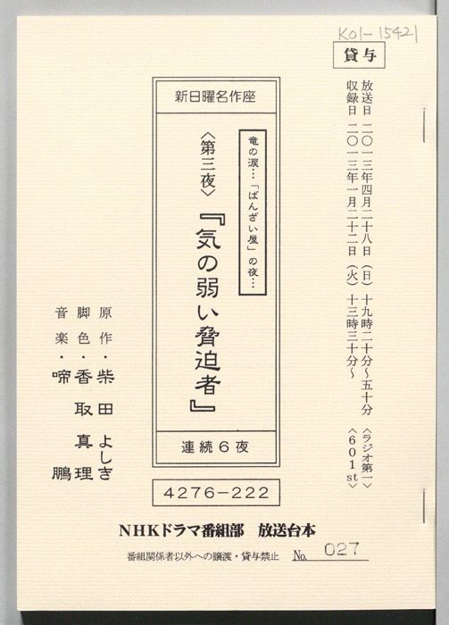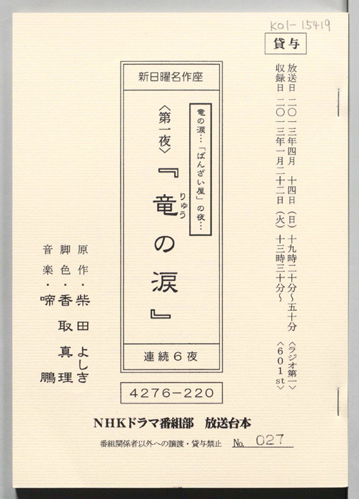 - 収蔵先 : 早稲田大学 坪内博士記念演劇博物館