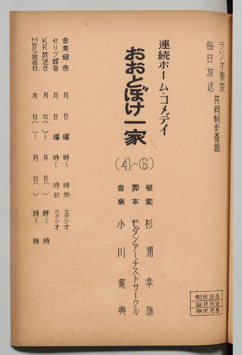 主な出演 : 野弥八郎,西条鮎子,深見泰三,宇治みさ子,左卜全,望月陽子,小島洋々,森和子,上田正世,川口節子,花澤徳衛,津路清子,原国雄,原幸雄,堺駿二,山本麟一,田中元治]- 作家 : 加納守