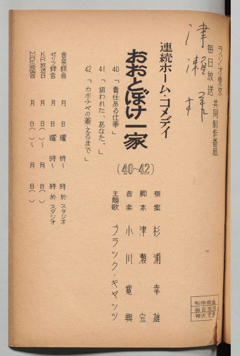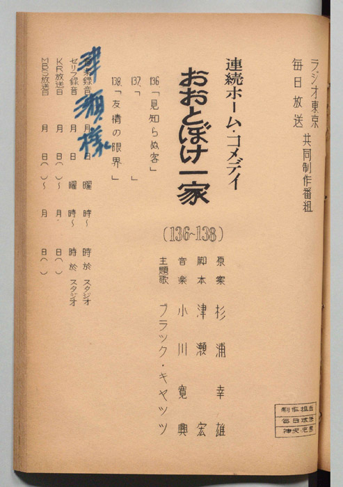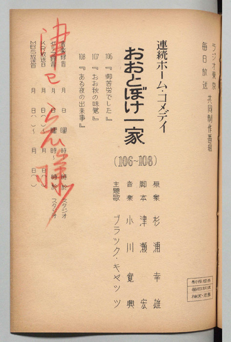 主な出演 : 伊藤雄之助,初井言栄,小沢直好,六郷育子,清水元,沢村貞子,小田政雄,松本修,深見泰三,北原三枝,西村晃,森健二,岳寛児,多々良純,- 作家 : キノトール