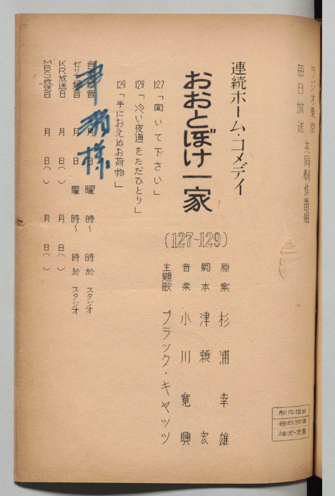 主な出演 : 丘久美子,深見泰三,夏川静江,村井英夫,安井昌二,芦田伸介,北原文枝,植木まり子,久米明,万里陽子,富田浩太郎,関弘子,南利明- 作家 : 高橋二三