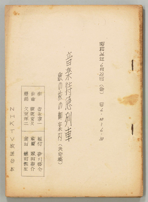 主な出演 : 金沢明子,高橋キヨ子,初代浜田喜一,吉沢浩,(司会)玉置宏,(踊り)花柳啓之社中,(伴奏)藤本琇丈社中<三味線>藤本秀輔,藤本秀三,<鳴物>山田鶴助,山田鶴志,<唄囃子>志村春美,秋野恵子,(尺八)米谷威和男,(津軽三味線)沢田勝秋,(太