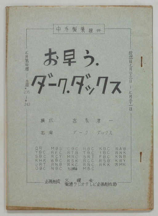 主な出演 : 相原ひろ子,浅利みき,伊藤多喜雄,江村貞一,大塚文雄,小山内清謡,小沢千月,加賀山昭,金沢明子,神谷美和子,菊地恵子,小杉真貴子,佐々木理恵,杉村美永子,鈴木正夫,高橋キヨ子,藤堂輝明,西村直子,根本美紀,早坂光枝,藤みち子,三浦隆子,山