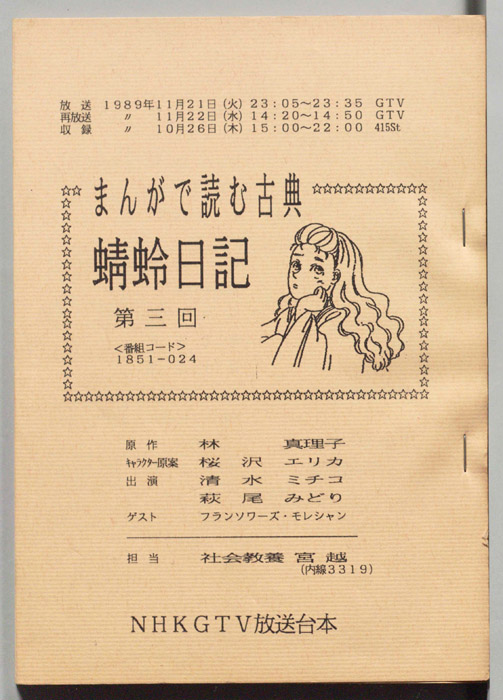 主な出演 : 浜木綿子,左とん平,清水ミチコ,大場順,筒井巧,森みつえ,(以下手書き)赤座美代子,高橋かおり,新克利,大沼遼平,鼓太郎,トミ譲二,山本紀彦,松田章,外川貴博,松川真也,正司花江,住吉正博,花原照子,児玉頼信,大沼翼,藤田哲也,池