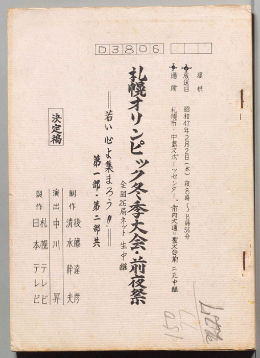 札幌オリンピック冬季大会・前夜祭 =若い心よ集まろう!!=