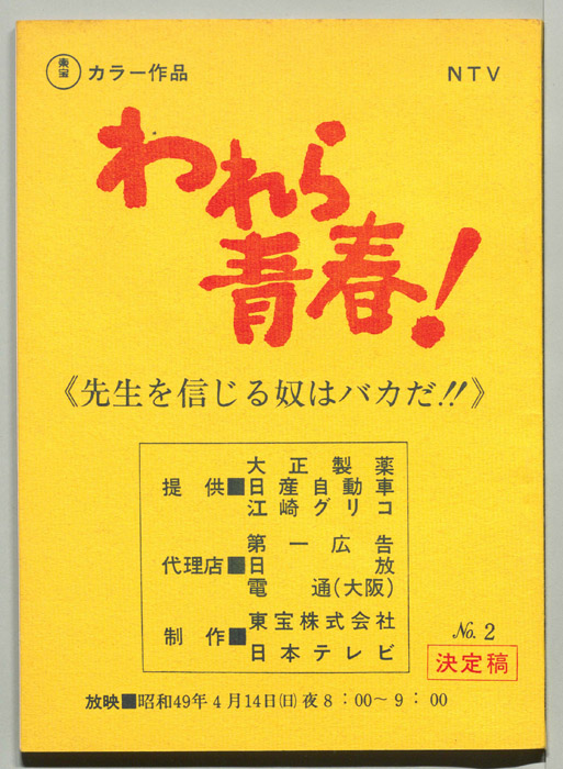 主な出演 : 中村雅俊,神田正輝,あべ静江,井上純一,草川祐馬,清水昭博,下村彰宏,湯沢紀保,根本きよみ,藤谷美和子,森さとみ,小松蓉子- 作家 : 大原豊