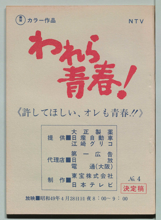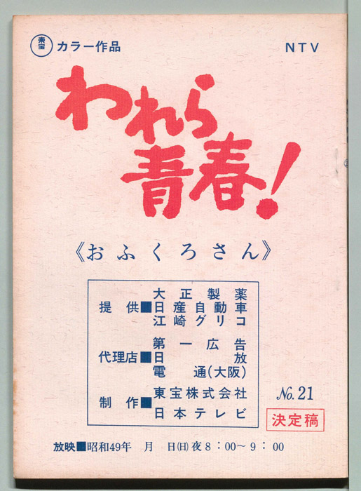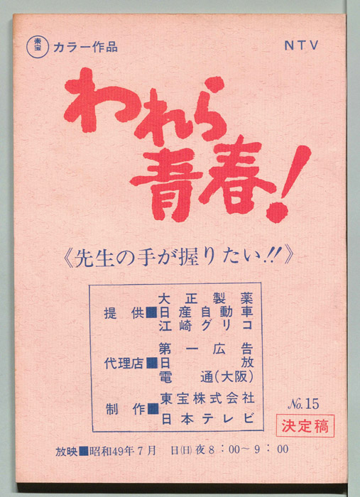 主な出演 : 中村雅俊,由美かおる,神田正輝,井上純一,松原秀樹,清水昭博,広松肇,田鍋友啓,藤谷美和子,北川優子,小川ユキ,島村聖名子,樹木希林,岡田奈々,[戸井田稔]- 作家 : 畑嶺明
