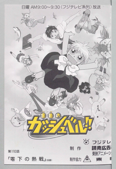 主な出演 : ゾナゾ博士)納谷六朗,(アポロ)関俊彦,(水野鈴芽)秋谷智子,(アルム)渡辺久美子,(真美子)岡村明美,(ゲリュオス)柴山由崇,(オーエン)奥田啓人,(ガンツ),(フェリス),(バムウ)山口眞弓,(そのパートナー)【金色のガッシュベル】 千年に一度行われる『魔界の王』を決める戦いに選ばれた百人の魔物の子供達、彼らは自身の内に秘めた力を引き出せる同じ心の形を持った人間のパートナーを探して、人間界で『魔本』の