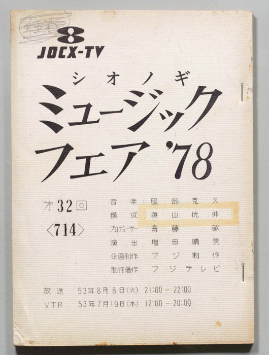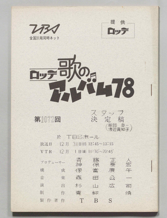 主な出演 : 布施明,ハイファイセット,渡辺真知子,(司会)長門裕之,南田洋子- 作家 :