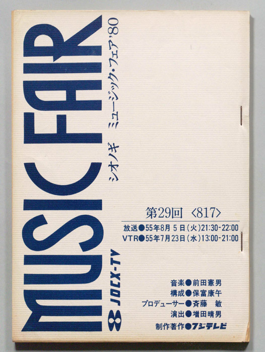 主な出演 : 八神純子,渡辺真知子,松原みき,(司会)長門裕之,南田洋子