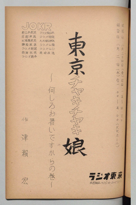 - 放送局 : ラジオ東京(現・TBSラジオ)