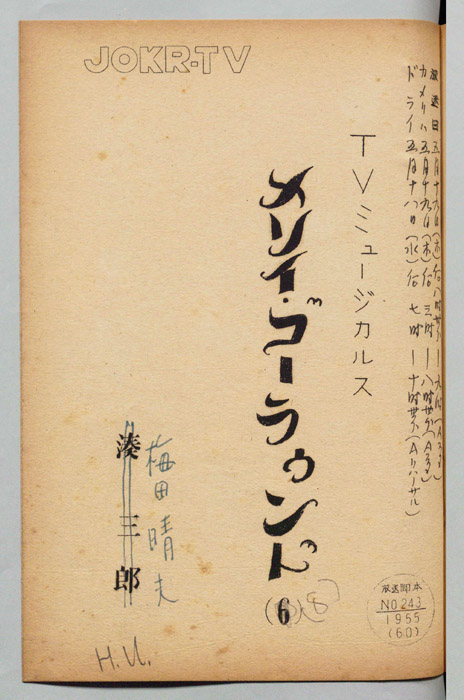 (手書きで)春江ふかみ,富永美沙子,笠間(?)雪雄,E・エドモンズ,ラーク・モフタビン,ダン・ヤダ・ダンサーズ,トップ,ライト,菅原文太,ラジオ東京管弦楽団