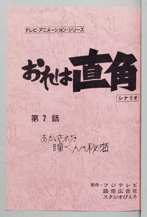 主な出演 : (ナレーター)西村知道,(影の男),(生徒A),(瞳),(イタチ),(生徒B,C),(細刈)緒方賢一,(俵),(月形)二又一成,(城代)大平透,(直角)坂本千夏,(生徒G),(榊),(綾乃)大谷育江,(父),(香苗)滝沢久美子【おれは直角】江戸時代末期、身分は低いながらも厳格な武士の家庭に生まれた『石垣直角(いしがきちょっかく)』は父から「武士道とは曲がることなく直角であるべし」と教えられ、人一倍真っ直ぐな武士道を貫く少年へと育った。そ