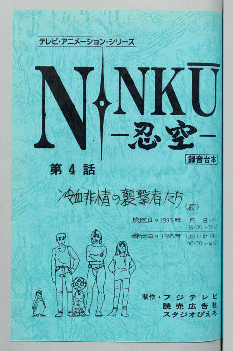 主な出演 : (風助)松本梨香,(橙次)小杉十郎太,(藍眺)真殿光昭,(里穂子)林原めぐみ,(ヒロユキ)鈴木勝美,(バサラ)松本保典,(マザー)前田敏子,(夏子)かないみか,(ヨシオ)喜田あゆみ,(風助の母)滝沢久美子,(リーダー)福田信昭,(偵【NINKU―忍空―】架空史EDO歴、帝国復活を狙う将軍家と民主勢力による大きな戦乱があった。この大戦の最中、わずか数十名の部隊で帝国軍を壊滅寸前にまで追い詰めた集団があった。その名は「忍空隊」か