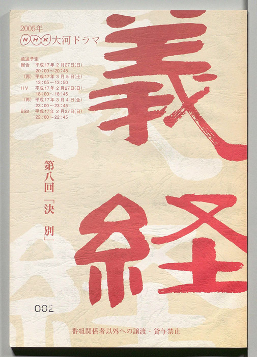 主な出演 : 滝沢秀明,上戸彩,南原清隆,うじきつよし,伊藤淳史,海東健,長谷川朝晴,大杉漣,木村昇,草見潤平,高杉亘,五代高之,松尾貴史,松平健,石原さとみ,平幹二朗,夏木マリ,草刈正雄,市川左團次,小林稔侍,財前直見,中井貴一,(語り)白- 作家 : 中島丈博