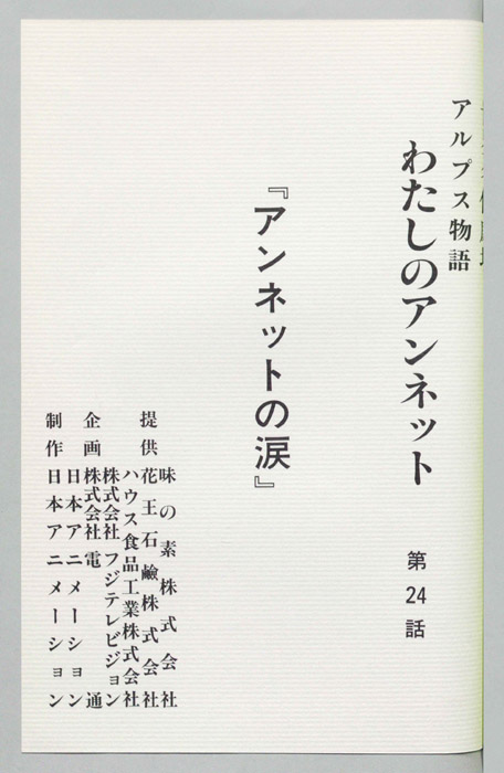 主な出演 : [アンネット・バルニエル:潘恵子,ルシエン・モレル:山田栄子,ピエール・バルニエル:小林修,クロード・マルタ:沼波輝枝,マリー・モレル:吉田理保子,ニコラス先生:徳丸完,フランツ:川島千代子,ジャン:青木和代,アントン:鈴木三枝]