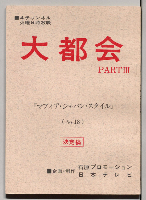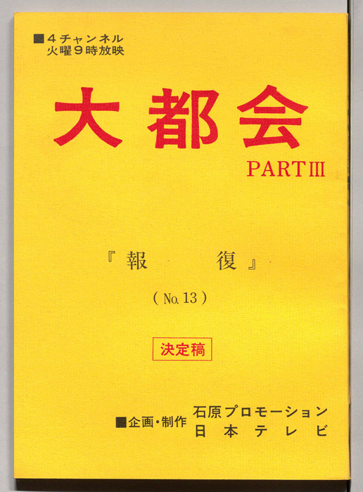 主な出演 : 渡哲也,舘ひろし,川野太郎,谷川竜,市川翔子,池田政典,高松秀郎,安部譲二,秋山武史,荒井玉青,十二騎グループ,(以下手書き)松田勝,高品格,八島えみ,片岡五郎,小池雄介,岸成,青島健介,鈴木隆二郎,夏木順平- 作家 : 金子成人