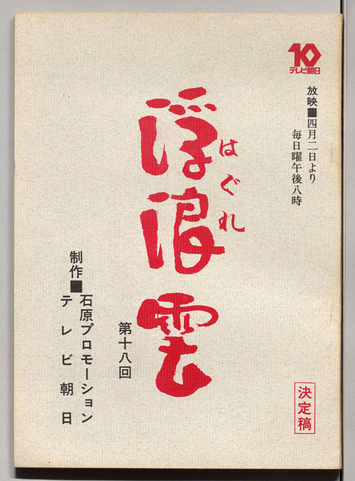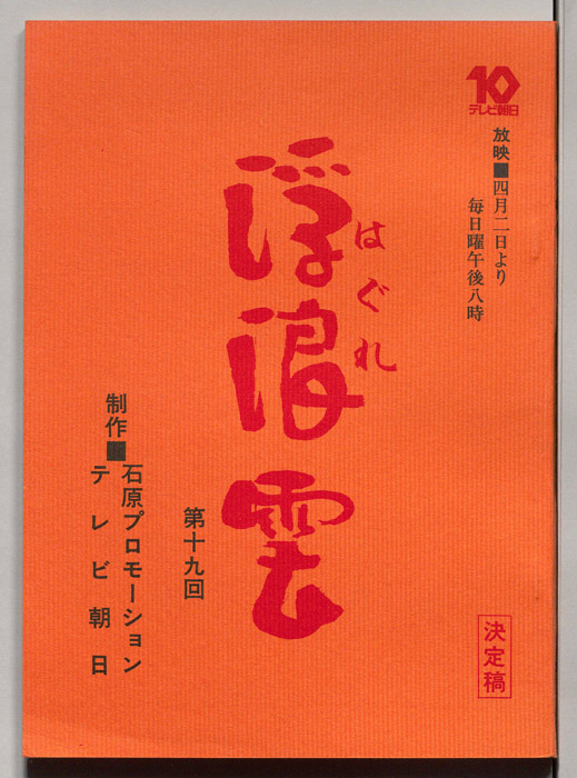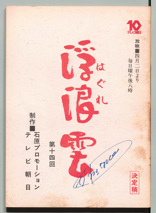 主な出演 : 渡哲也,舘ひろし,神田正輝,谷川竜,加納みゆき,仲村トオル,谷啓,鈴木瑞穂,(以下手書き)倉崎青児,中村れい子,片岡五郎,笹子康隆,福永喜一,住田豊,田之頭保弘,大橋由政,村上一成,グループ12騎会,クロキプロ- 作家 : 永原秀一