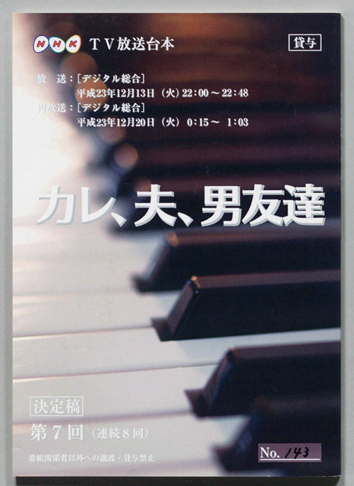 主な出演 : 渡部篤郎,石田ゆり子,尾野真千子,片岡礼子,北見敏之,滝藤賢一,渋川清彦,山本浩司,奥貫薫,平岳大,斎藤歩,遊井亮子,チェホ・イムレ,ルドルフ・マッカラン,ロア・アラン,エディ・サイトウ,リカヤ・スプナー,グレゴリ・ペーカー- 作家 : 古沢良太