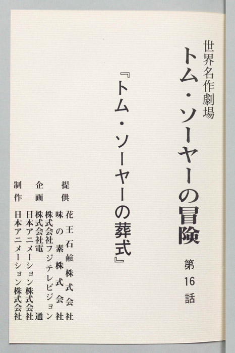 主な出演 : ョン),牧師),(ジョー),(ジェフ),(マフ・ポッター)【トム・ソーヤーの冒険】わんぱくでイタズラ好きの少年『トム・ソーヤー 』は両親を早くに亡くし、伯母『ポリー』と共にアメリカのミシシッピ川沿いにあるセントピーターズバーグという村で、親友の『ハック』や弟の『シッド』と