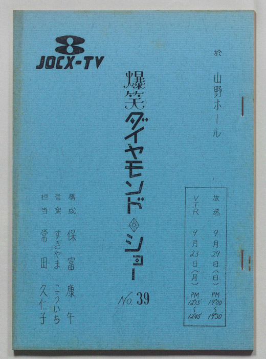 主な出演 : 春日八郎,仲宗根美樹,倍賞千恵子,金井克子,アントニオ古賀,原田信夫とファイブキャラクターズ,獅子てんや,瀬戸わんや,堀内完 ユニークバレエ団,スターダストガールス,白磯たけるとゲイスターズ,新室内楽協会,三味線 豊寿- 作家 : 西野晧三