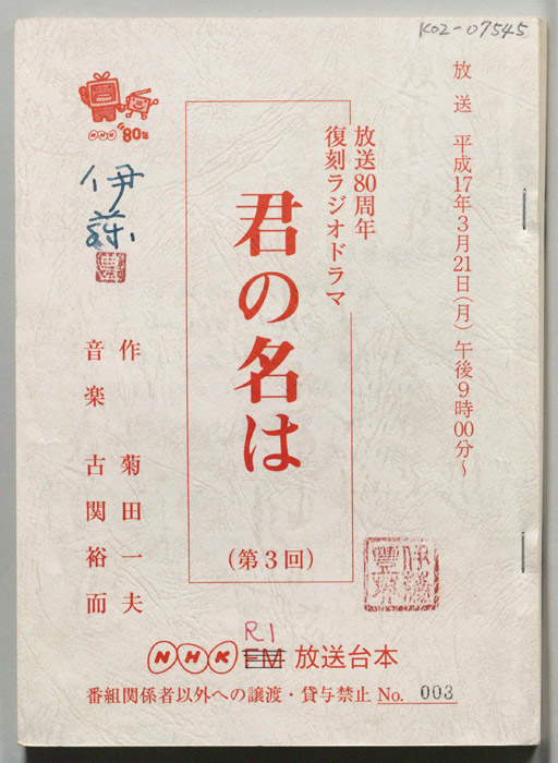 - 放送局 : NHK第一放送