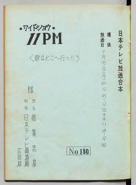 主な出演 : 瀬川瑛子,田代美代子,秋庭豊とアローナイツ,門脇陸男,真帆香ゆり,(ゲスト)星野哲郎,井上かつお,(司会)玉置宏,(特別出演)山橋敬一郎,高橋剛二,林幹雄,(アナ)あさのれい,
