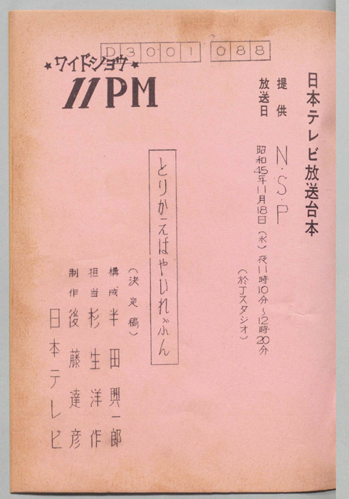 主な出演 : 三保敬太郎,松岡きっこ,小川知子,青山ミチ,ヴィレッジ・シンガーズ