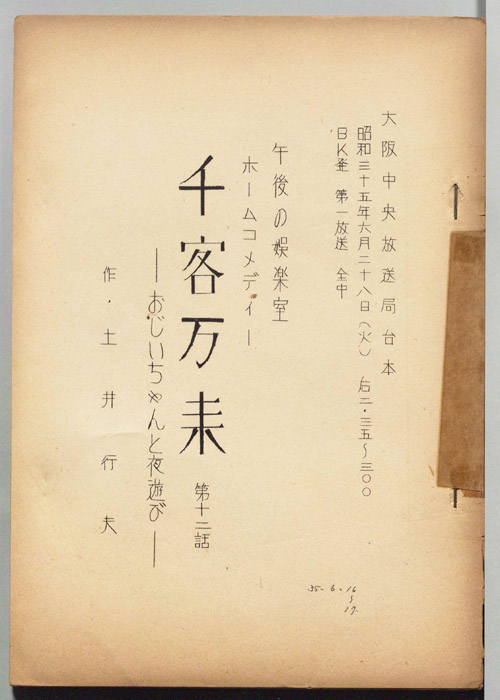 主な出演 : 渋谷天外,酒井光子,服部君子,曽我廼家明蝶,曽我廼家五郎八,島田文雄,石島康代,由利京子,白川淳子,石浜祐次郎,中村あやめ,小城裕子,石河薫,小島秀哉,巽トモヱ,藤山寛美- 作家 : 舘直志