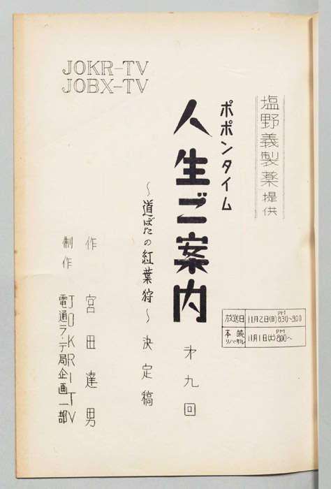 主な出演 : 待田京介,中山麻理,久里みのる,天津敏,由利徹,池田雪路,田畑猛雄,山口朱実- 作家 : 岡田教和
