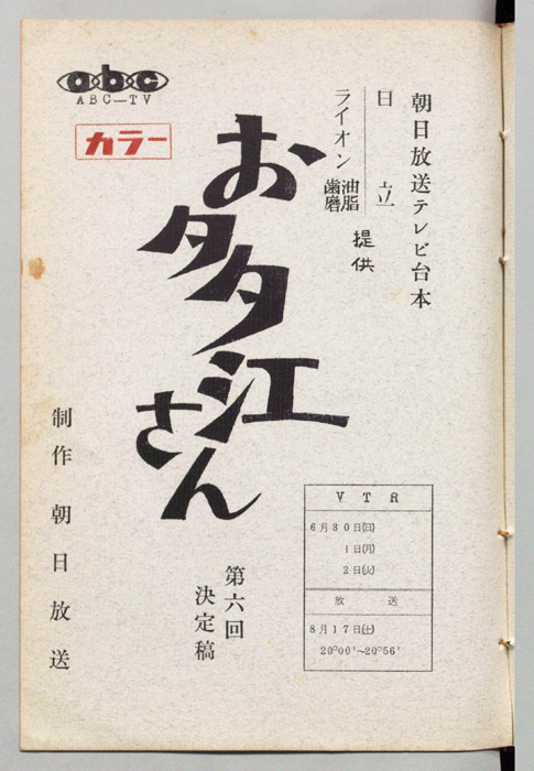 主な出演 : (31)三ツ矢歌子,高松英郎,清水まゆみ,佐伯徹,原泉,武藤英司,白石奈緒美,岡部雅郎,町田博子,中島みち子,佐藤由子,(32)三ツ矢歌子,高松英郎,佐伯徹,原泉,小倉一郎,大川栄子,白石奈緒美,武藤英司,町田博子,佐藤由子,安田静子- 作家 : 竹内勇太郎