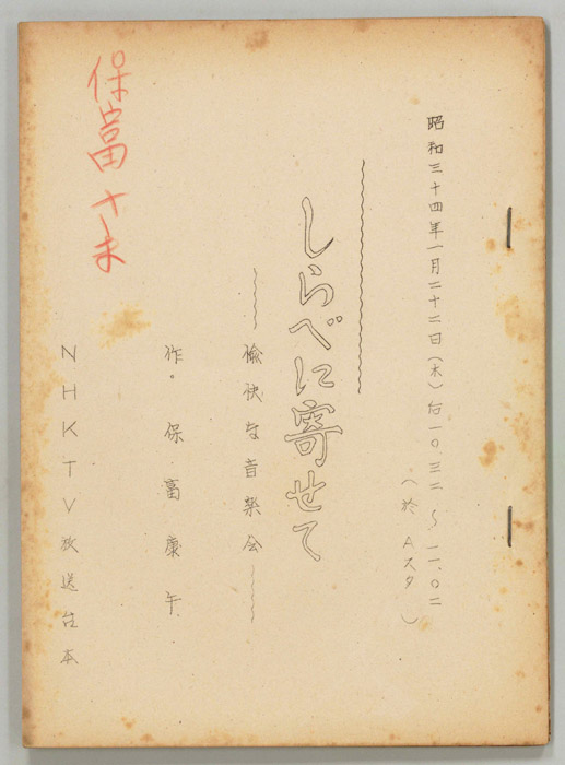 ,横道萬里雄,丸谷才一,前田昭雄,木村尚三郎,田中信昭,小島美子,一柳慧,小澤征爾,(演奏)塩田美奈子,腰塚健二,野平一郎,森一夫,村本和修,漆原朝子,丹羽勝海,柴田乙雄