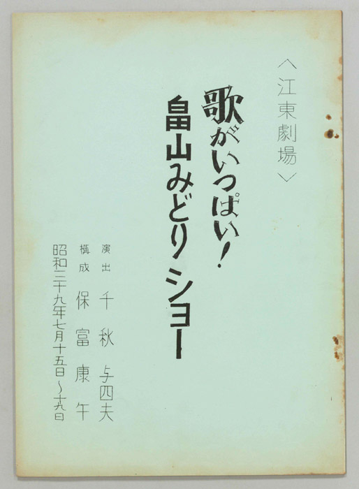 主な出演 : 金井克子,スターダスト・ガールス,ペギー葉山,武井義明,ザ・フラッシャーズ,アントニオ古賀,辻,北島三郎,畠山みどり- 作家 : 西野晧三