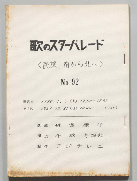 主な出演 : 三橋美智也,畠山みどり,藤山一郎,小唄勝太郎,倍賞千恵子,金井克子,玉川良一,世志凡太,原田信夫とファイブキャラクターズ,スターダストガールズ,花柳滝蔵社中,(津軽三味線)木田林松栄,日本合唱協会,アンサンブルフォーリー,(三味線)豊