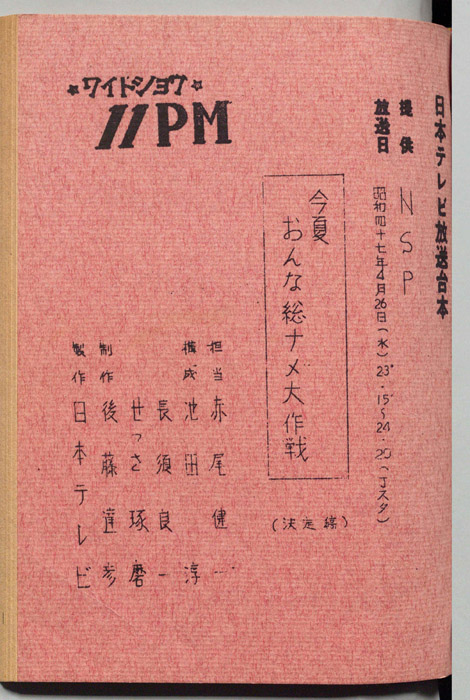 主な出演 : (司会者)佐藤愛子,(解答者)白石浩一,田中美智子,(アシスタント)西岡登美子