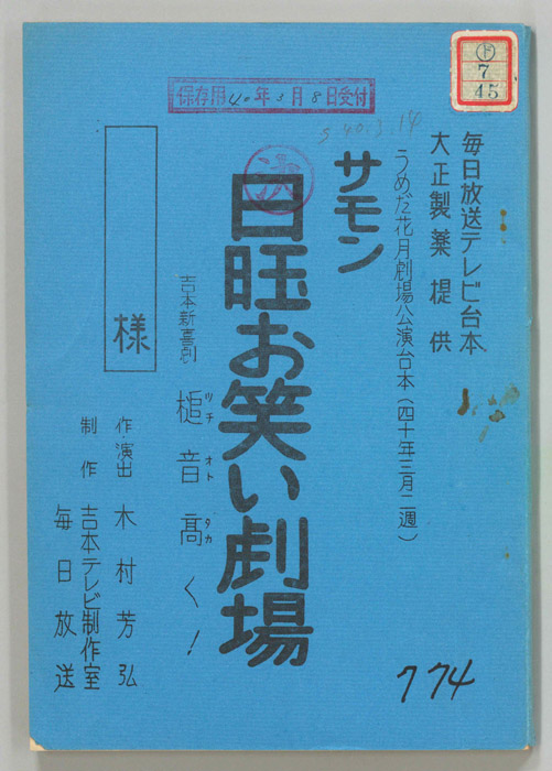 - 収蔵先 : 早稲田大学 坪内博士記念演劇博物館