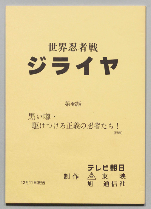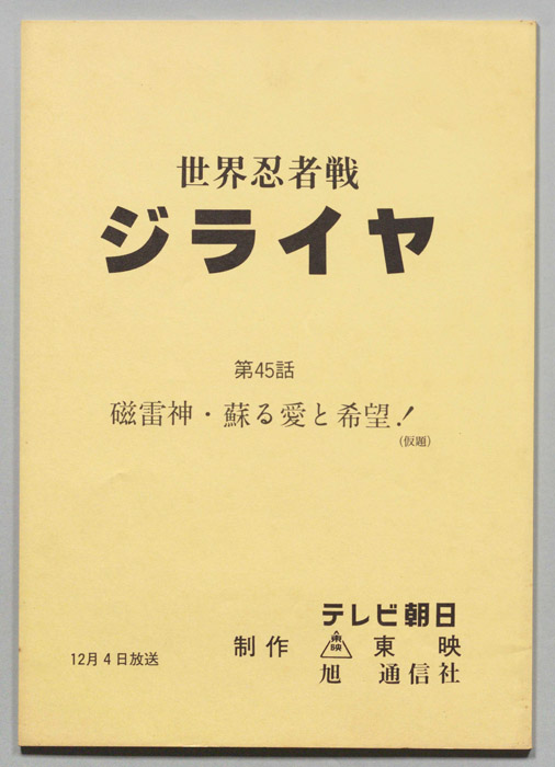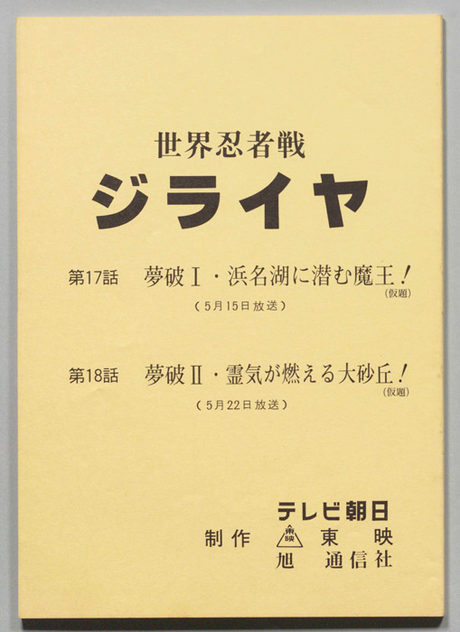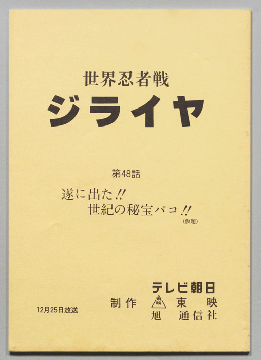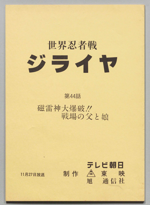 主な出演 : 筒井巧,的場耕二,関口めぐみ,橋本巧,田谷知子,金田憲明,飯塚昭三,野原ひろみ,永峰稜,広森信吾,蜂須賀昭二,山中一徳,宮崎剛,西尾徳,内田博之,斉藤茂,鈴木正幸,曽我町子,(ナレーター)大平透【世界忍者戦ジライヤ】悪の忍者『妖魔』一族、彼らは2300年前、宇宙から地球に飛来してきた世紀の秘宝『パコ』を手に入れるため、その暗躍の魔の手を世界に伸ばし始める。代々、パコを守り抜いてきた『戸隠流』忍者の家系である「山地哲山」は、養