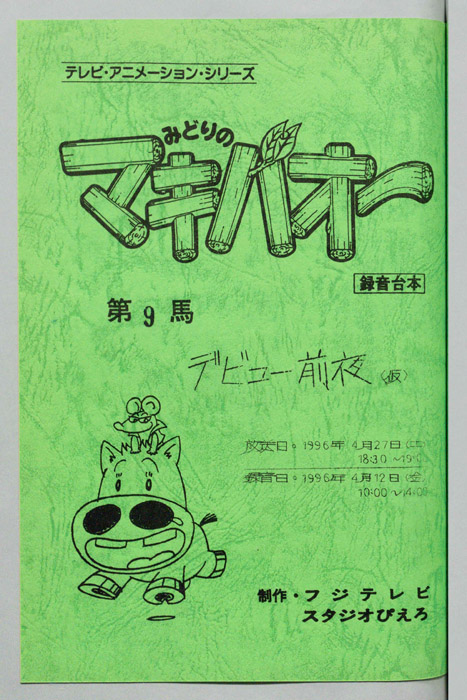 主な出演 : )水田わさび,(悪ガキB)佐藤ゆうこ,(悪ガキC)深雪さなえ,(禿親父),(裸親父),(アマゴワクチン)松本保典,(サトミアマゾン)真殿光昭,(アナ),(インタビュアー)真殿光昭【みどりのマキバオー】北海道の牧場『みどり牧場』の名馬「ミドリコ」から、まるでロバのような不思議な姿の馬「マキバオー」が生まれる。その後、みどり牧場の借金を返済する為、ミドリコが堀江牧場へ売られることになり、母