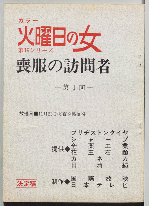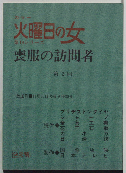 主な出演 : [(1話):天知茂,小畑絹子,星輝美,御木本伸介,伊達正三郎,九重京司,若宮隆二,鮎川浩,川部修詩,瀬戸麗子,宮田文子,津路清子,花岡菊子,水上恵子,小野彰子,扇町京子,山村邦子,和田孝,江見俊太郎,並木一路,左京未知子,(2話):菅