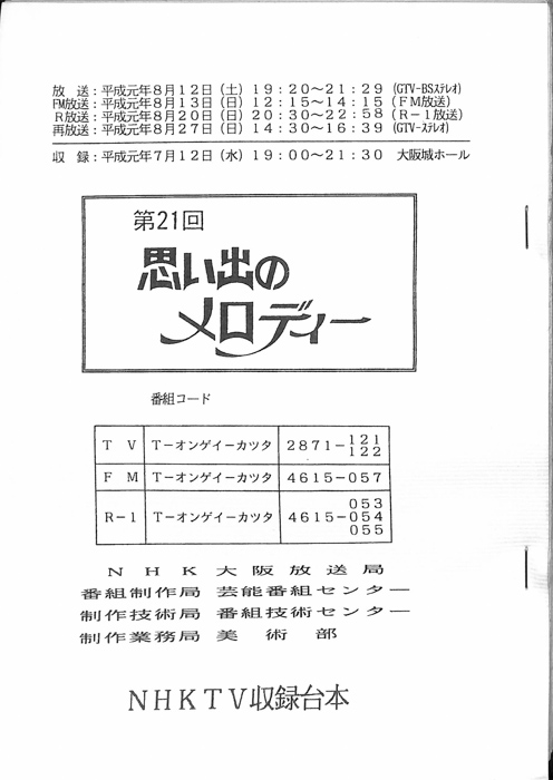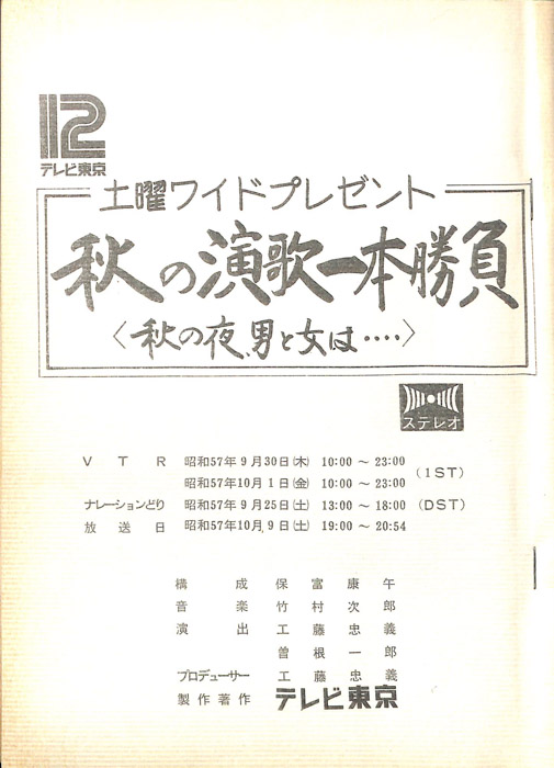 主な出演 : 玉置宏,石川さゆり