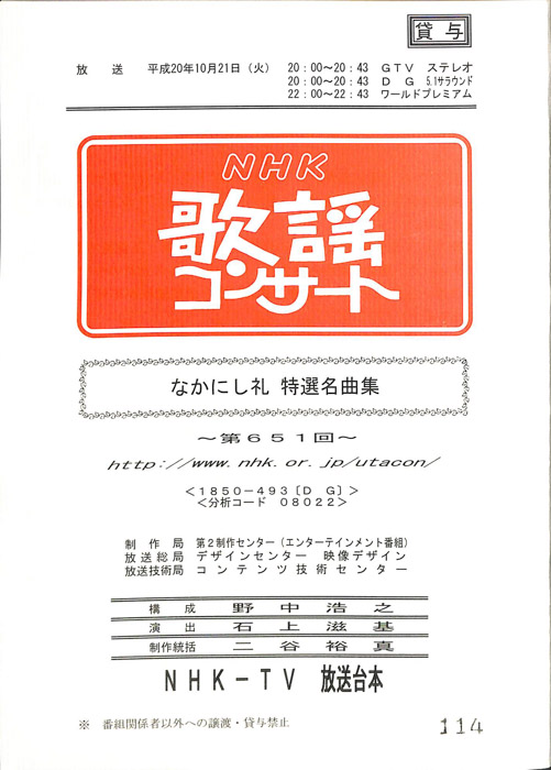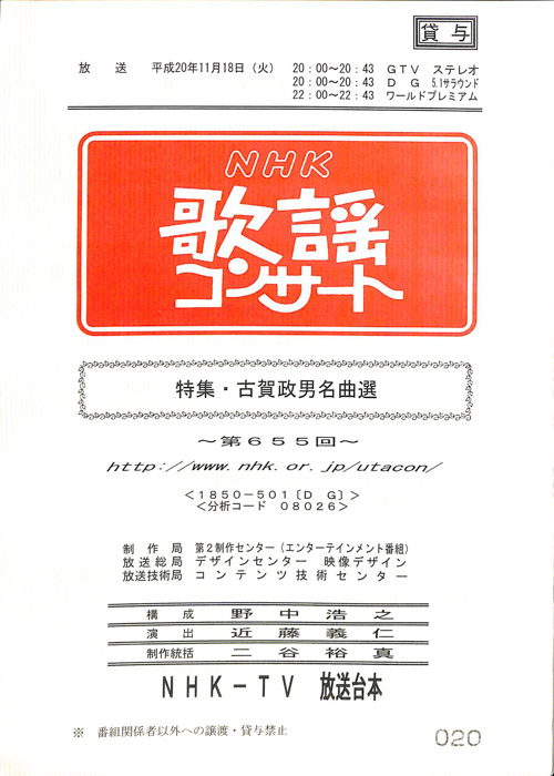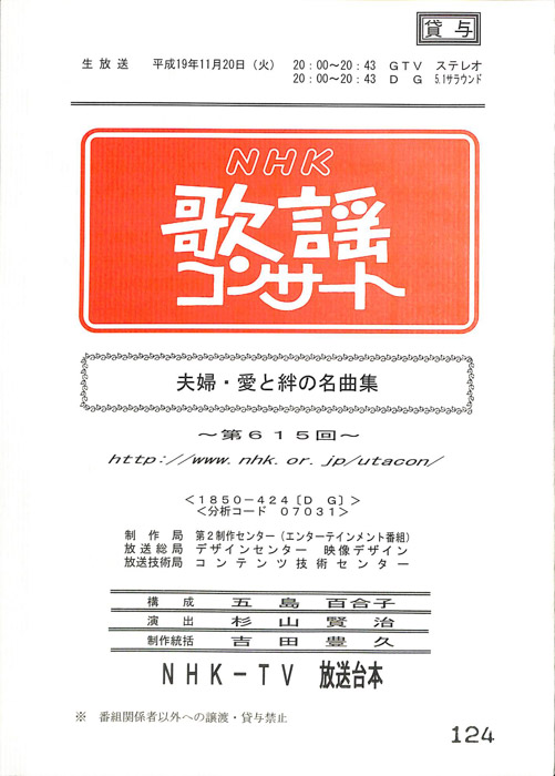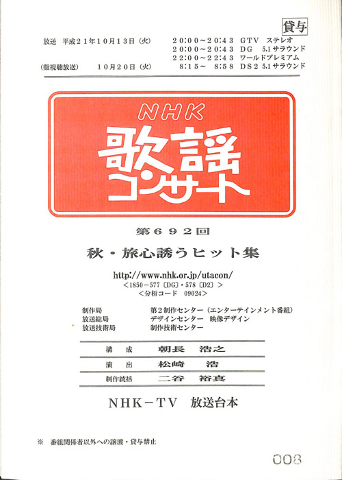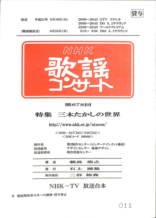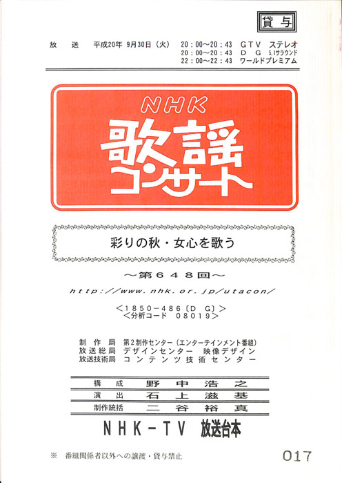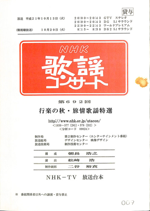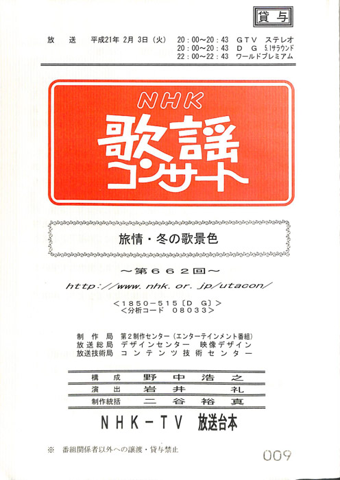 主な出演 : 秋川雅史,石川さゆり,石原詢子