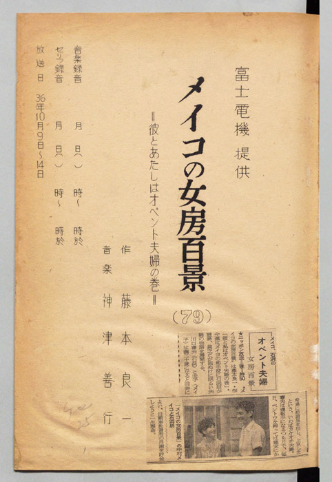 主な出演 : 桂麻紀,石浜朗,聖みち子,橘公子,舟木洋一,海老江寛,竹野マリ,佐藤蛾次郎- 作家 : 井手俊郎