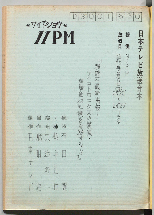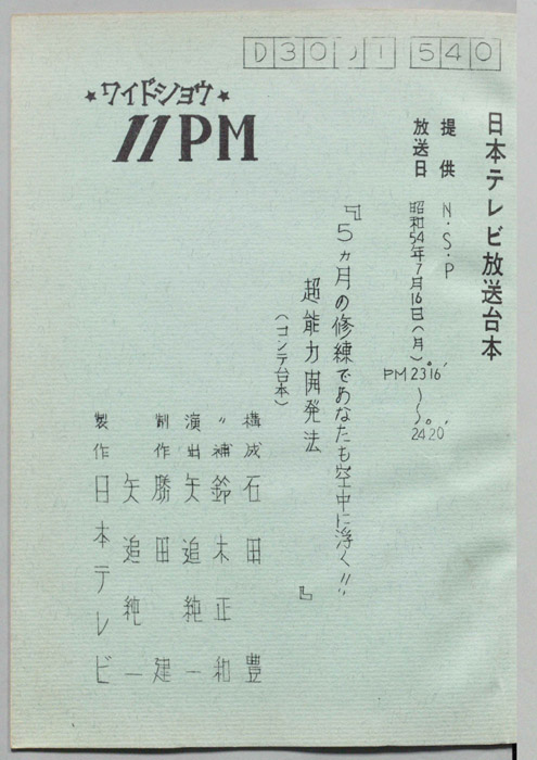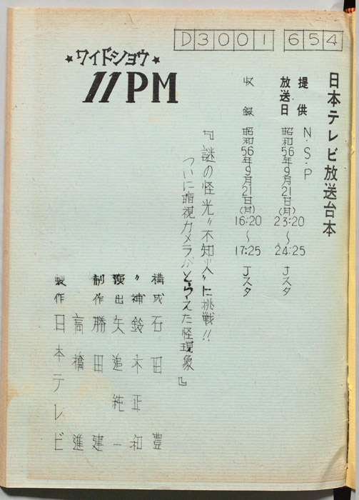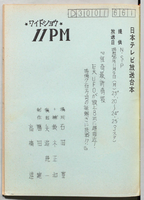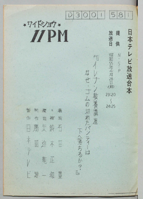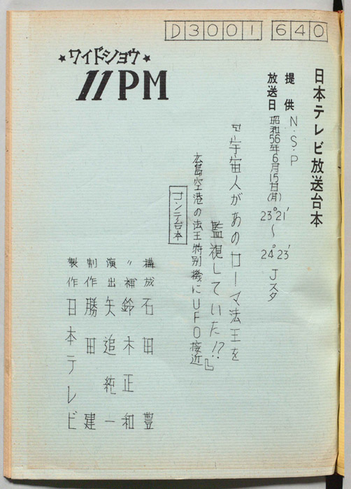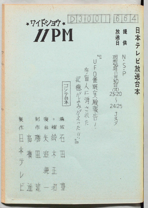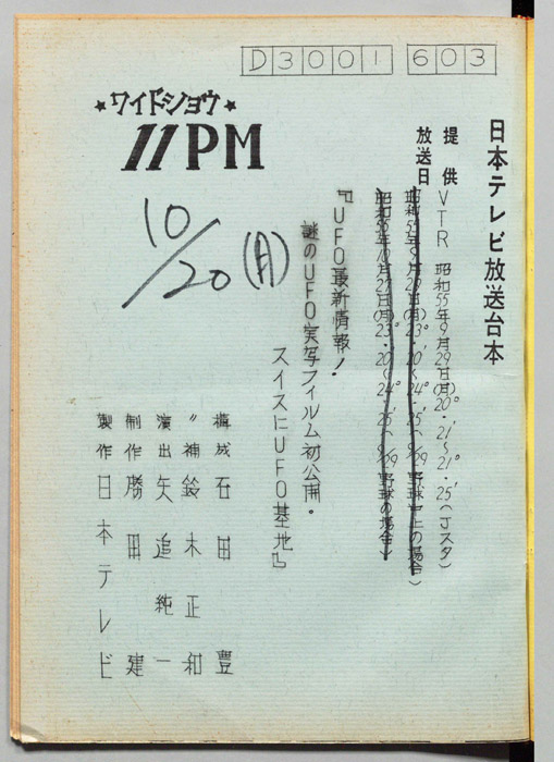 主な出演 : 大橋巨泉,松岡きっこ,石田豊,平沢正博,加藤春生,矢追純一,木下裕子,久里洋二,杉原淳とニューサラブレッズ