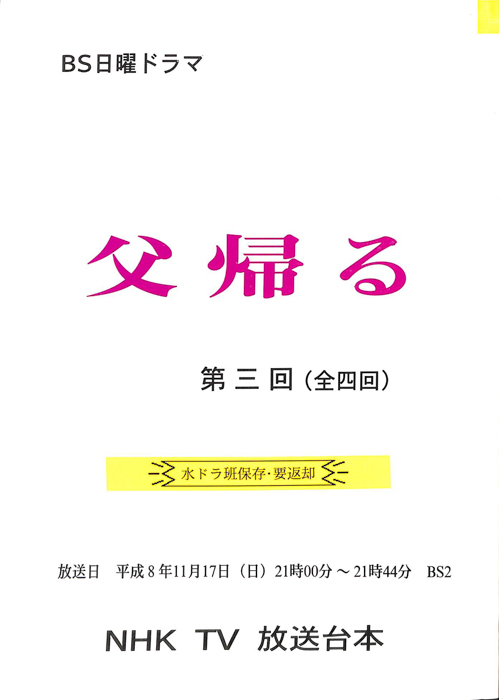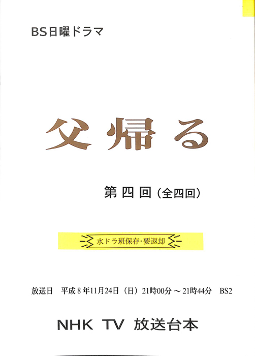 主な出演 : 芦田伸介,石田えり,萩原流行,可愛かずみ,赤塚真人,森塚敏,片桐はいり,小沢象,ひかる一平,絵沢萠子,[佐戸井けん太]- 作家 : 井上ひさし