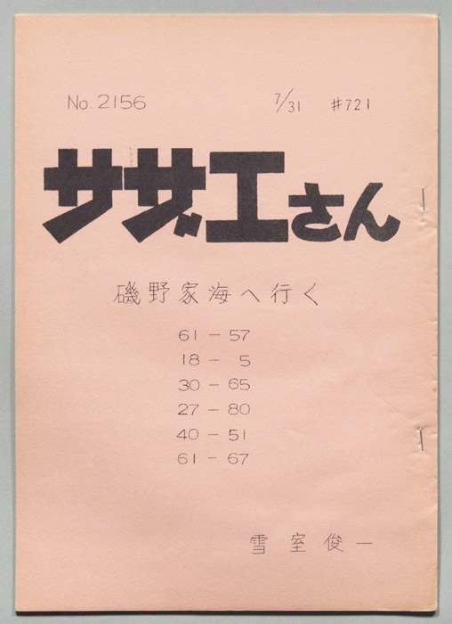 主な出演 :東京の静かな住宅地に住む「磯野家」には、父・波平、母・フネ、長女・サザエ、長男・カツオ、次女・ワカメが周囲の人々と共に、賑やかに暮らしていた。後にサザエはフグ田マスオと結婚して、長男・タラオが誕生し三世代家族として、昭